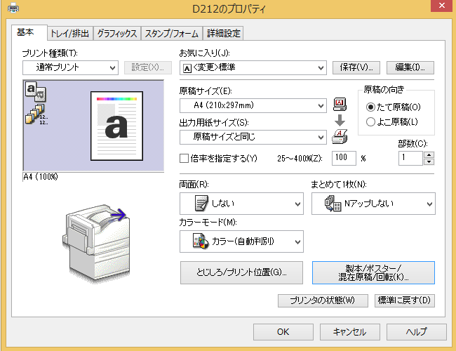 で,結論.プリンタの機種及びドライバによって設定が異なるし,そもそも「出来ない」場合もあるので,注意です.検索すると世の中に沢山ひっかかりますが,余り明示的にこのことが書いてあるサイトは少なかったので書いておきます.